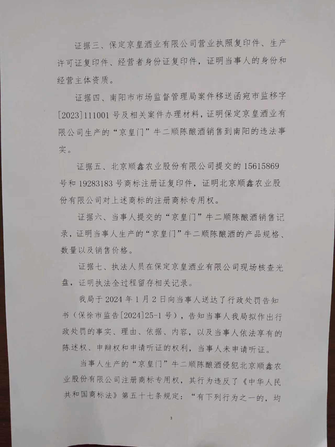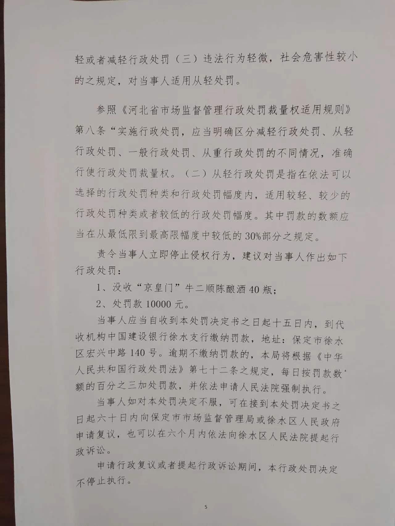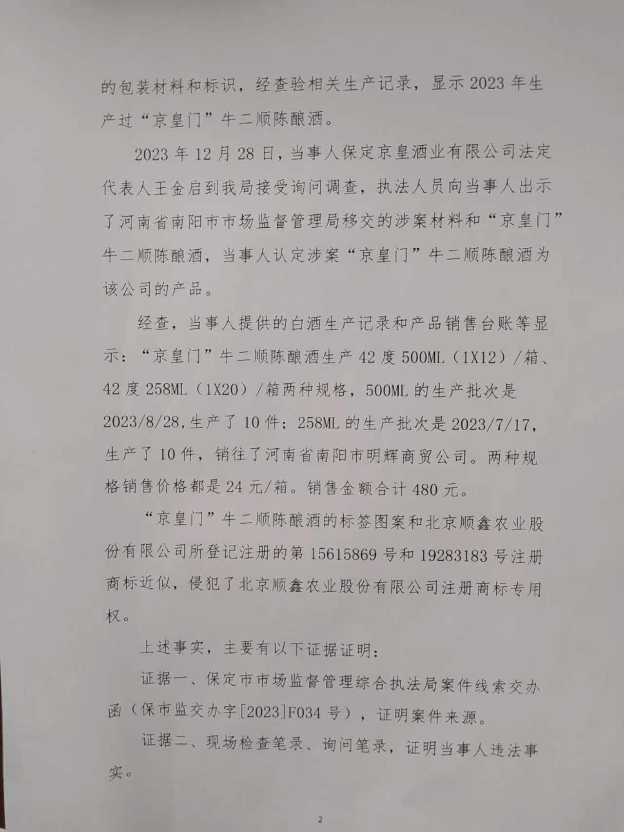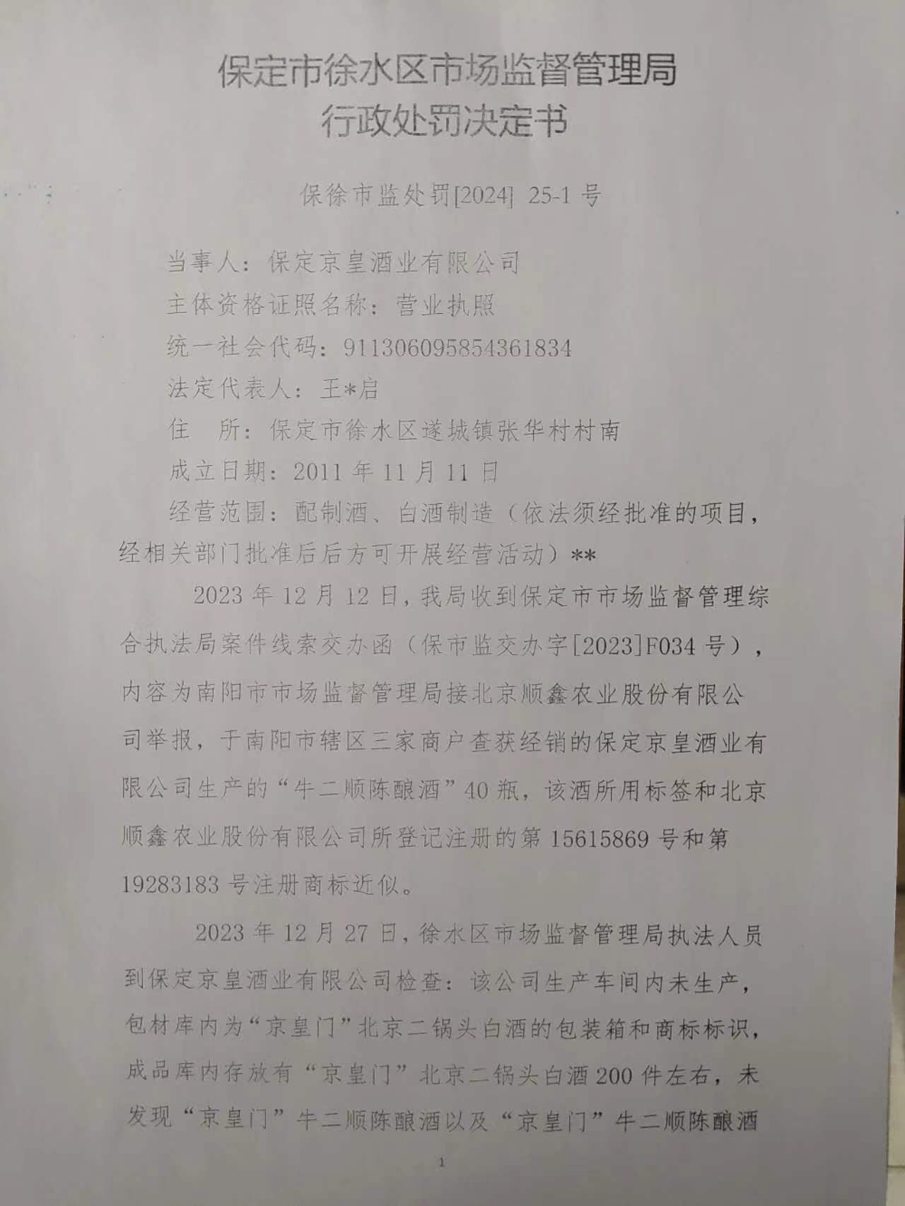 保定京皇酒业有限公司侵犯注册商标专用权案