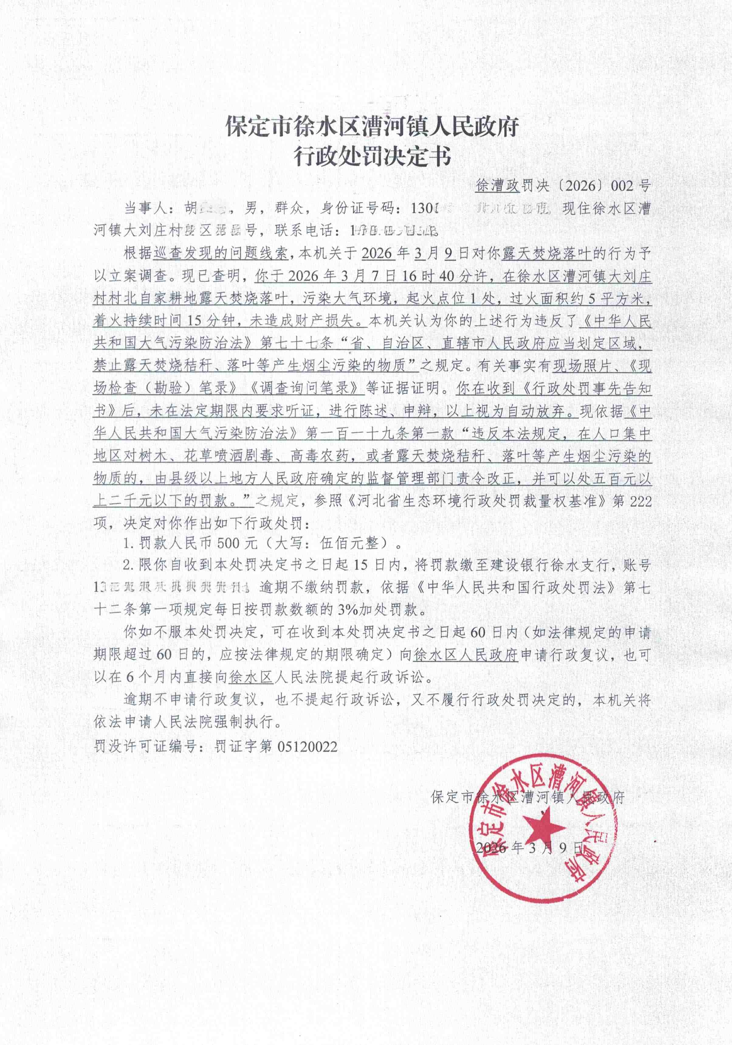 漕河镇行政处罚决定书-徐漕政罚决〔2026〕002号