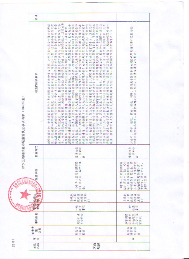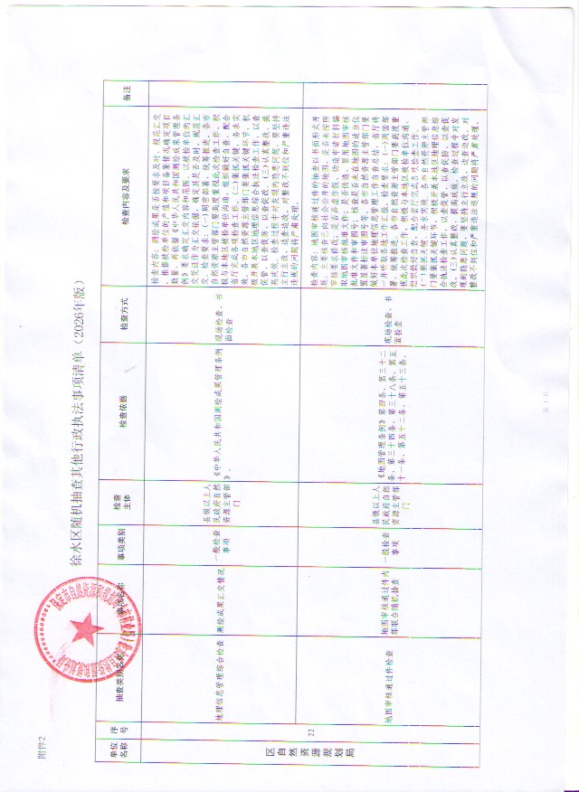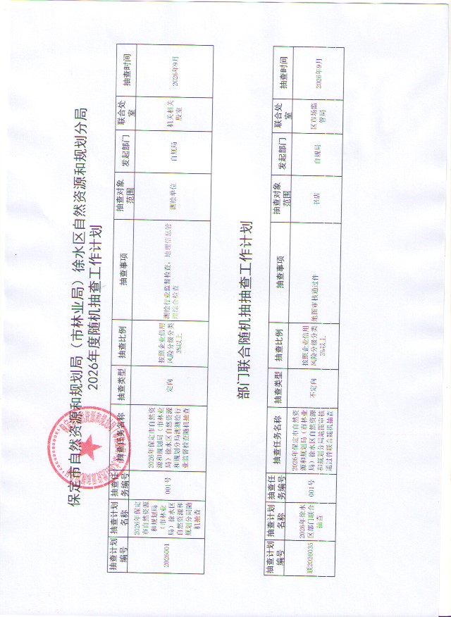保定市自然资源和规划局(市林业局)徐水区自然资源和规划分局2026年度随机抽查工作计划及事项清单