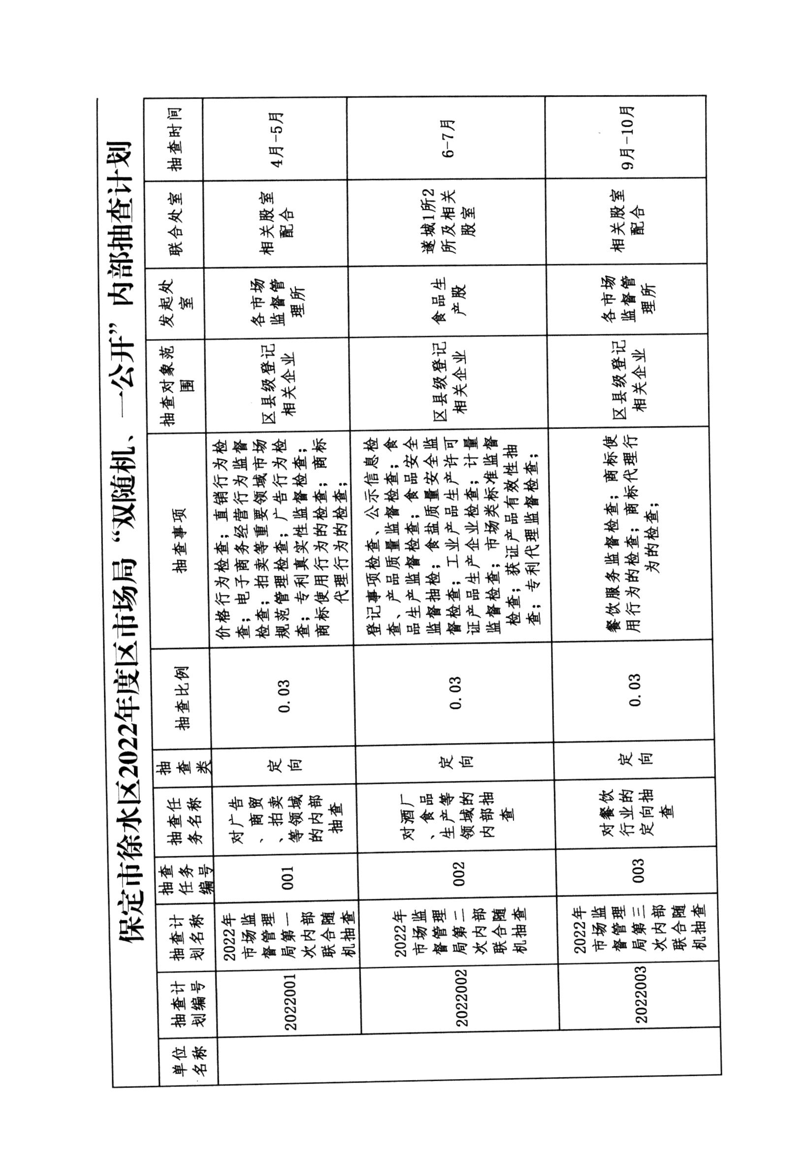 徐水区市场监督管理局内部联合“双随机、一公开”抽查工作计划