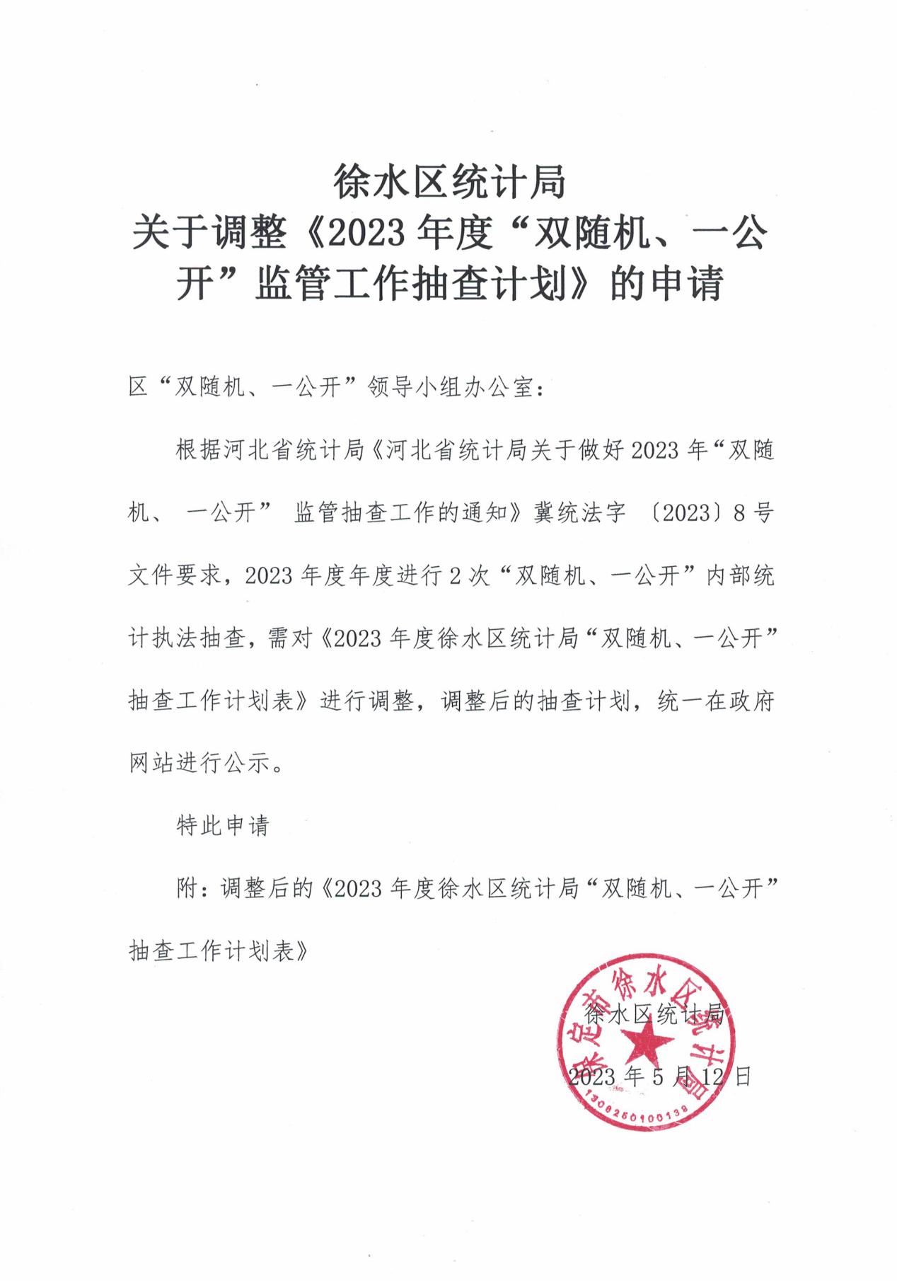 关于调整《2023年度“双随机、一公开”监管工作抽查计划》的申请---统计局