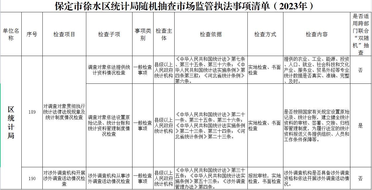随机抽查市场监管执法事项清单(2023年)---统计局
