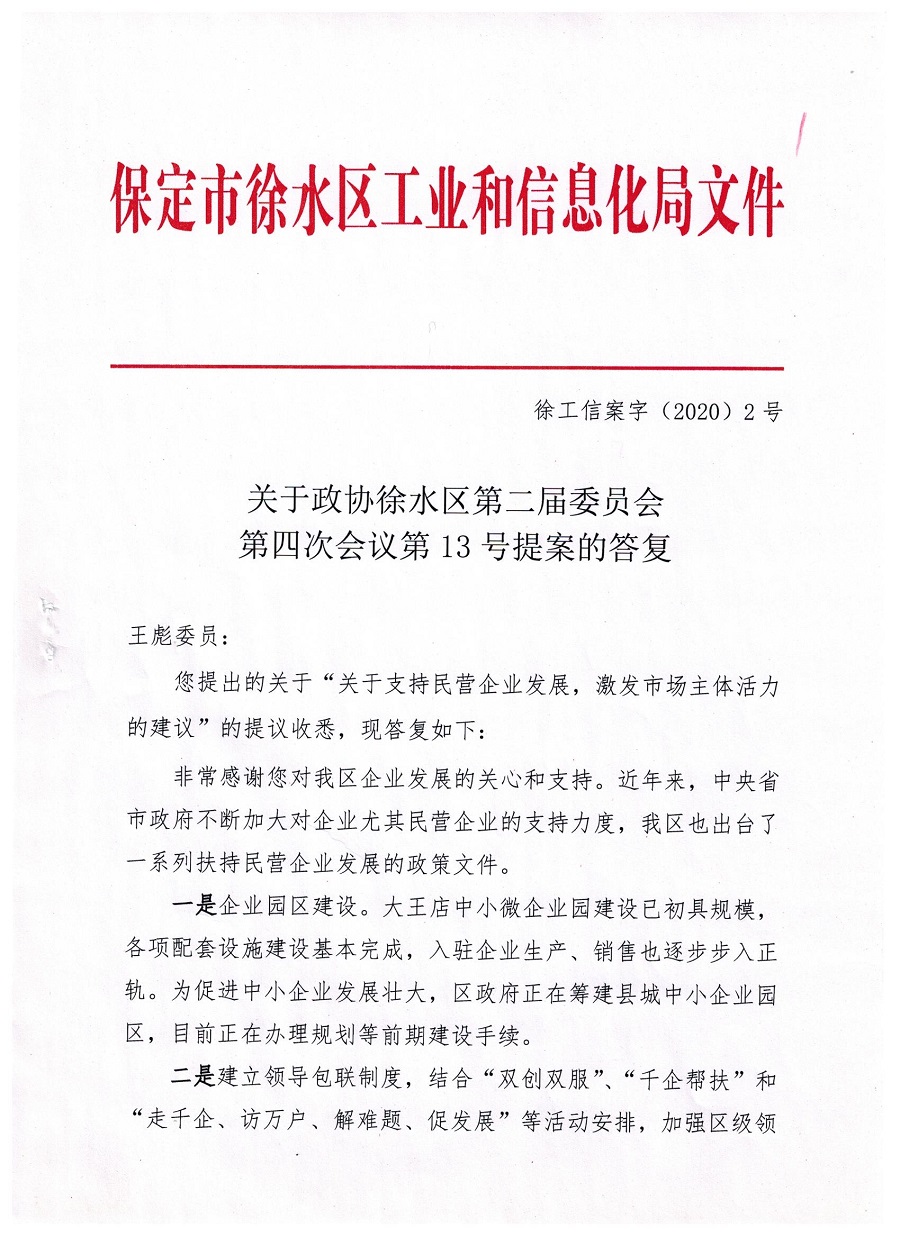 对政协徐水区第二届委员会第四次会议第13号提案的答复