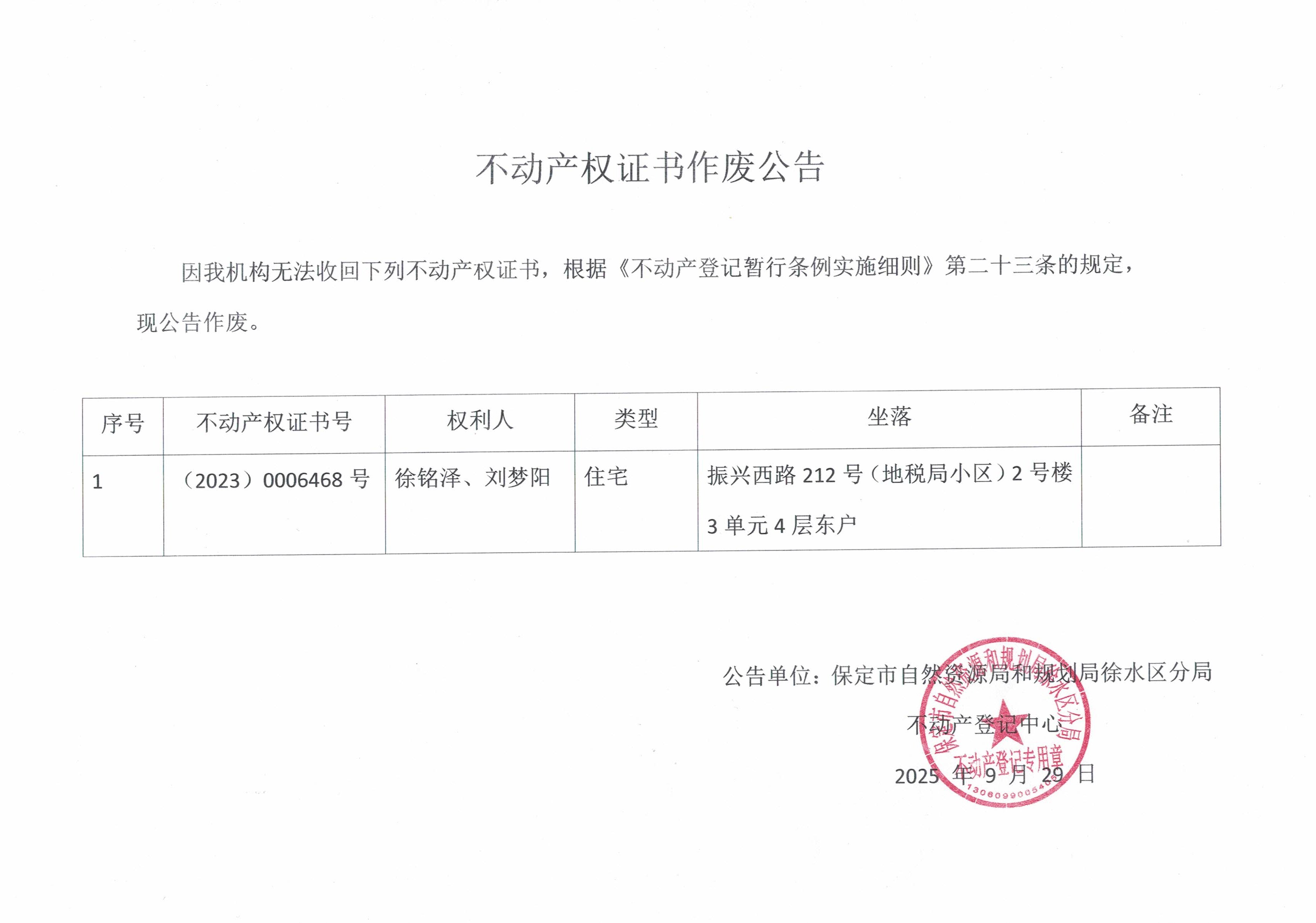不动产权证书作废公告