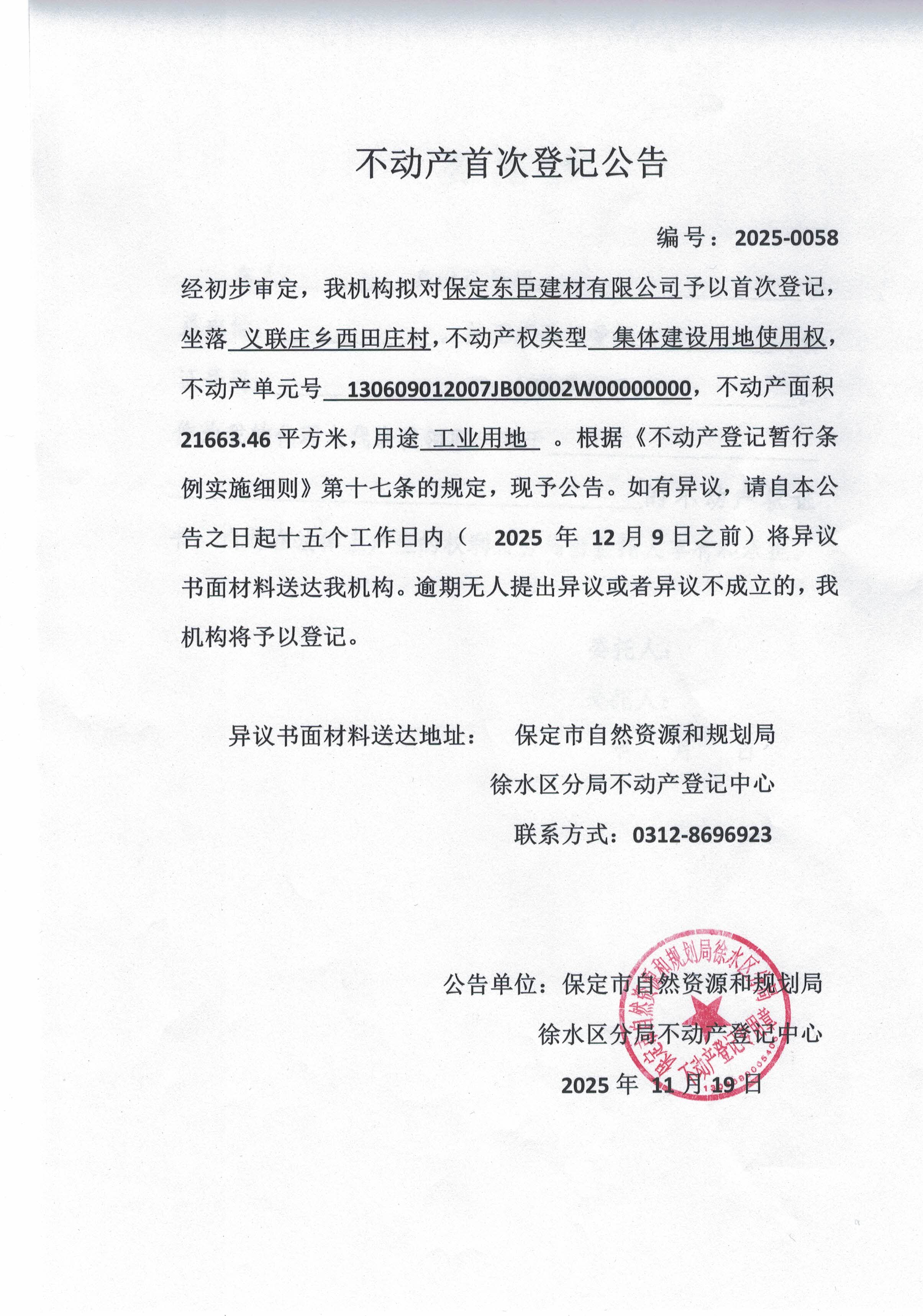 不动产首次登记公告