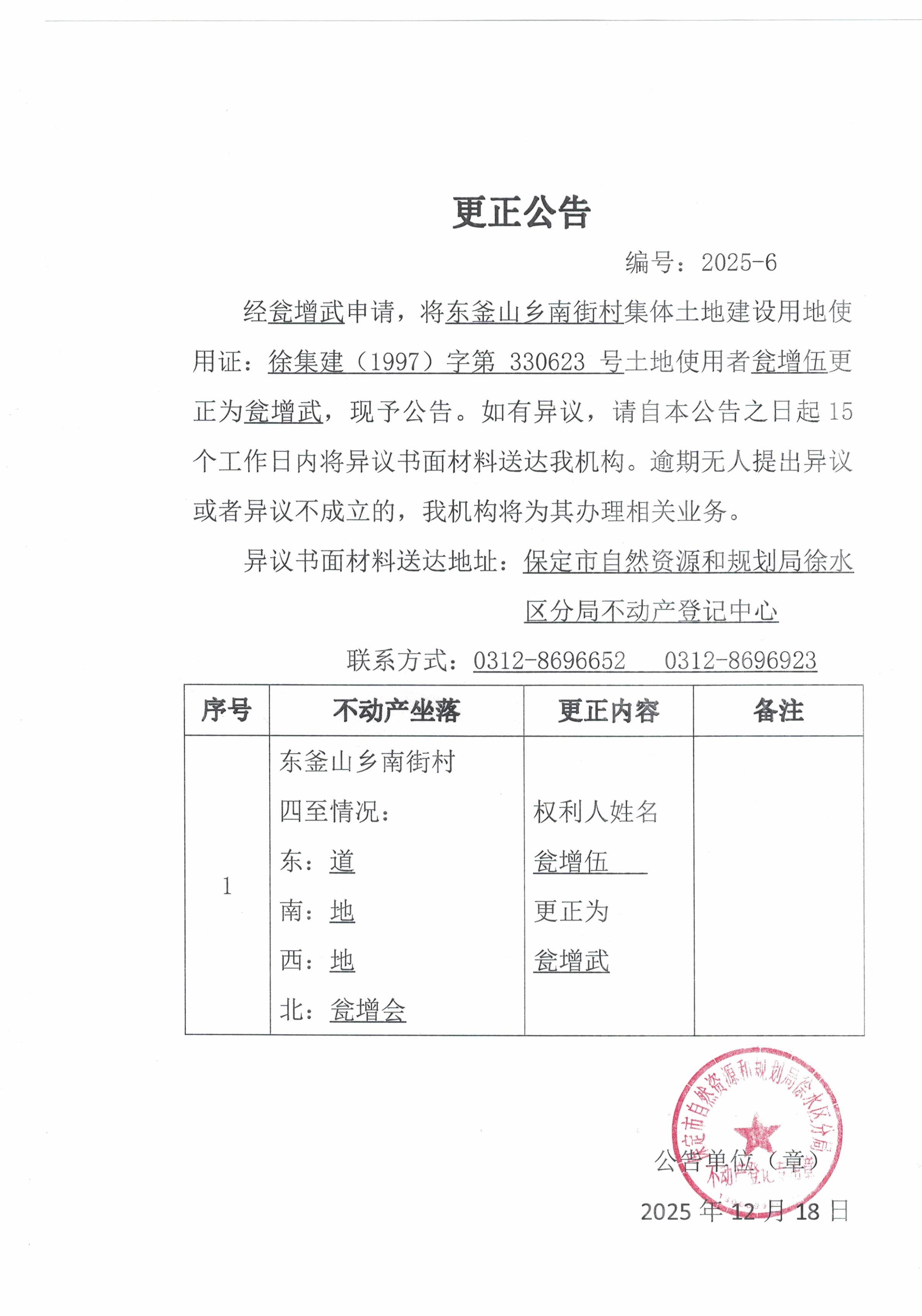 更正公告