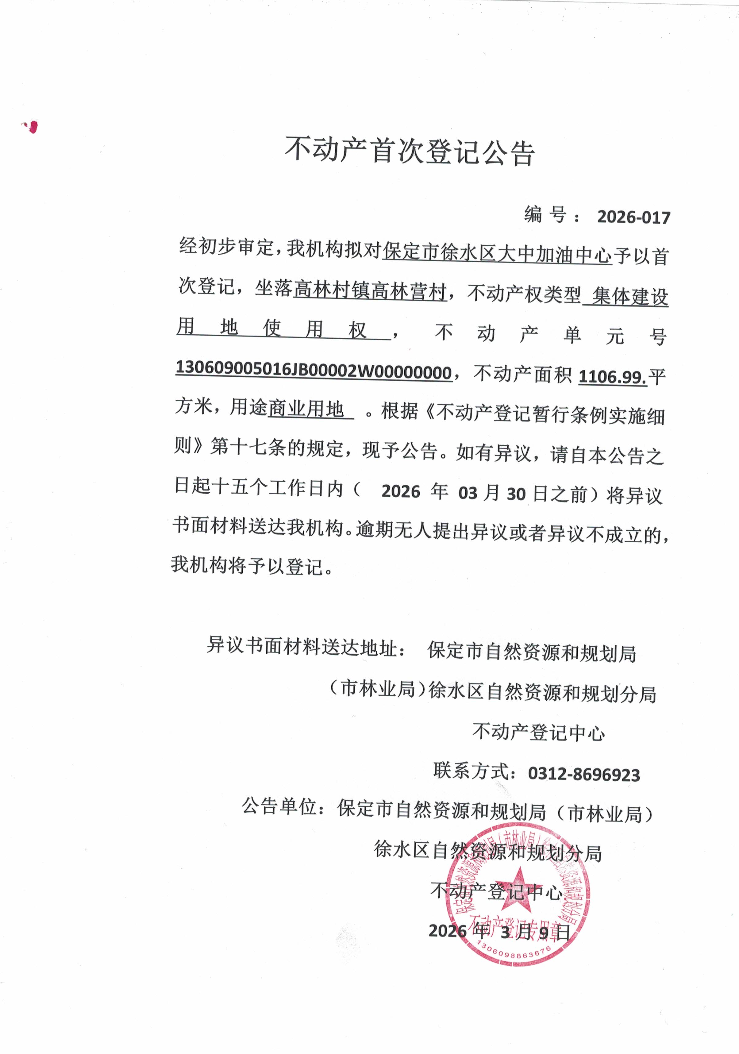名  称: 不动产首次登记公告
