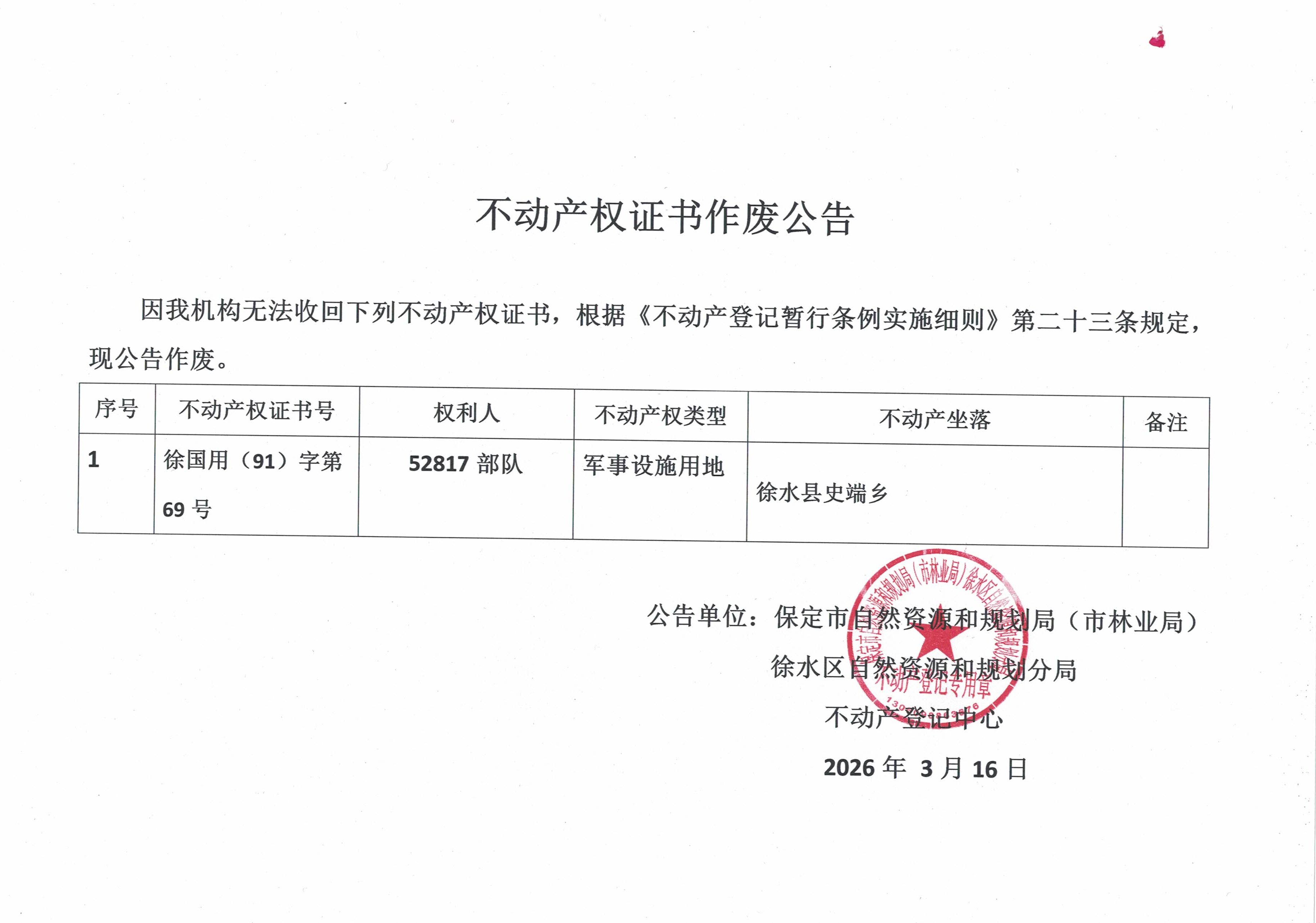 不动产权证书作废公告