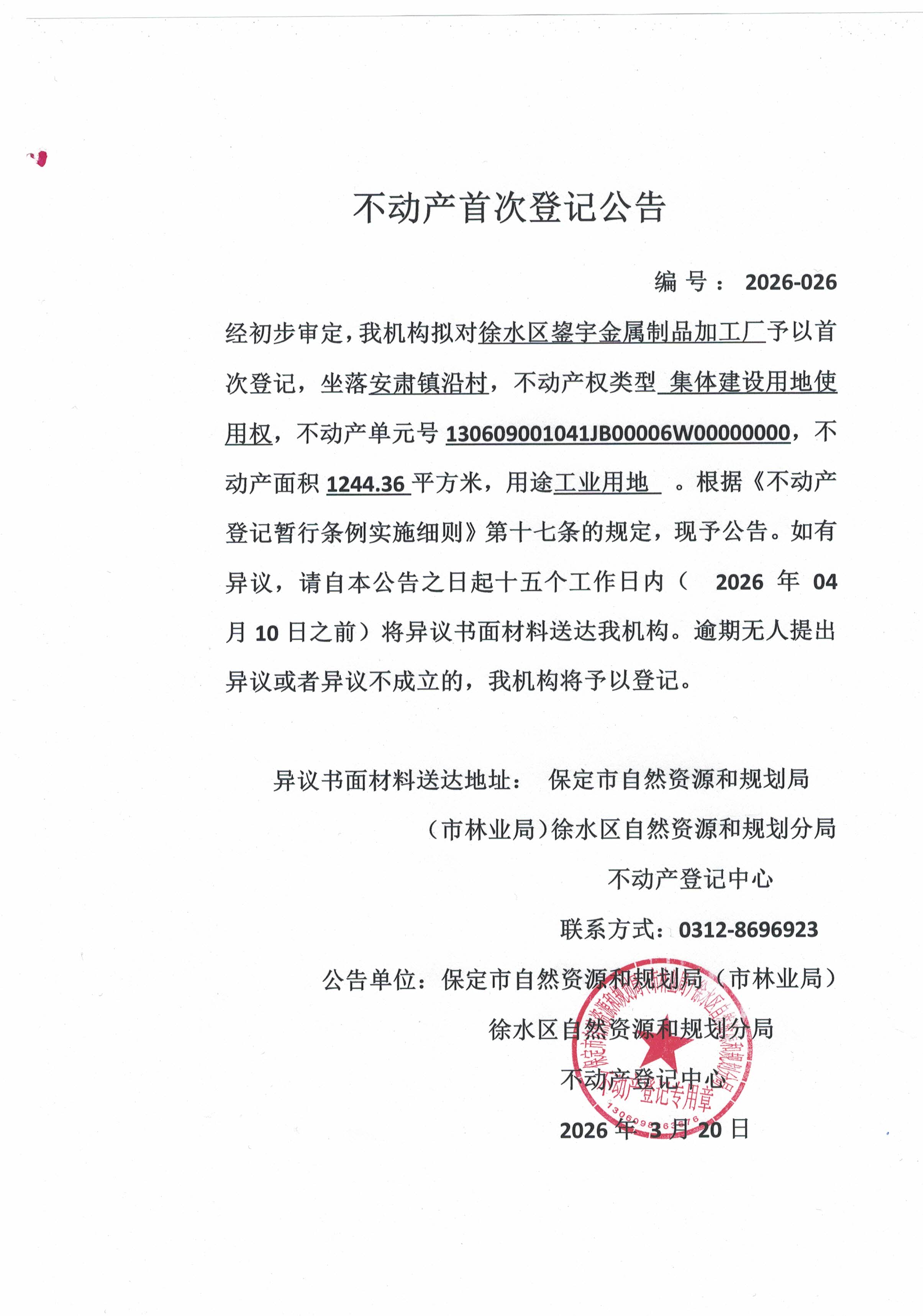 不动产首次登记公告