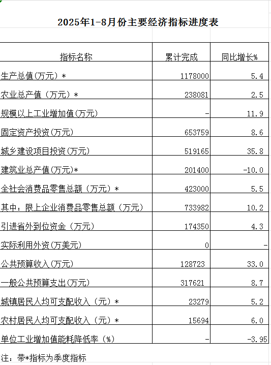 2025年1-8月份主要经济指标进度表---徐水区统计局