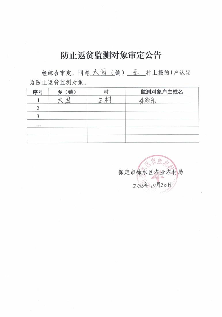 防止返贫监测对象审定公告